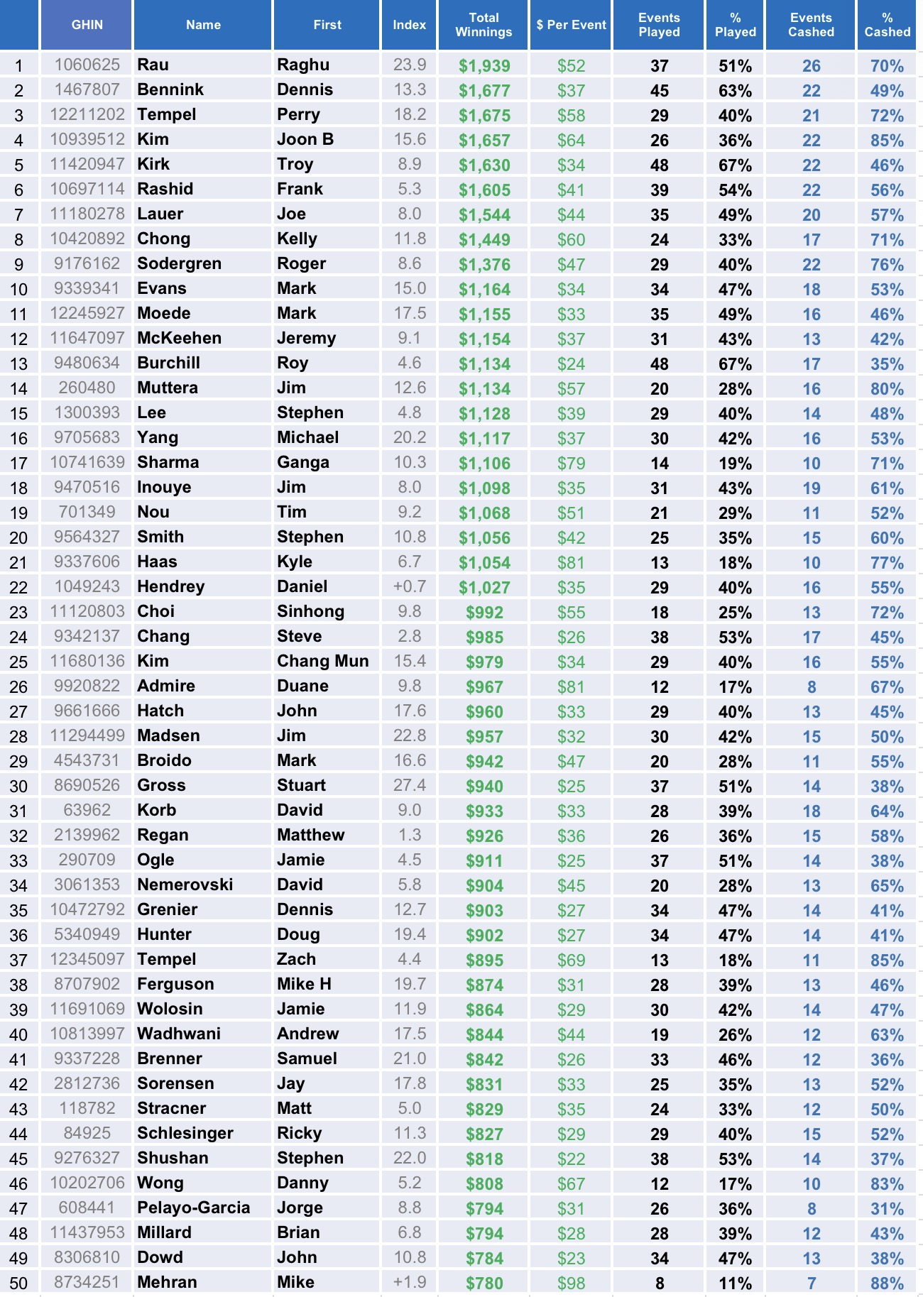 | 2025 YTD Top 50 List | Year 2024 Top 50 List |